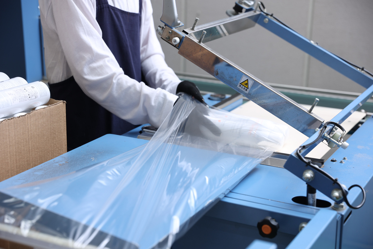 L型シュリンク包装機の設備を持っている会社が少ないのと、弊社は複数台設備していますので、生産本数も魅力です。またどのような品目の大きさにも、フィルムを合わせオーバーシュリンクが可能です。 |